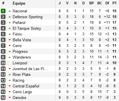 C’est donc dans cette ambiance de nouveau cycle général que l’Apertura 2012 a débuté. Après huit journées, nouveau cycle ou pas, les trois grands sont déjà devant. La Nacional de Recoba mène la danse, talonné par un Defensor Sporting dernier invaincu et le Peñarol meilleure attaque du championnat. Notons cependant le départ totalement manqué du Danubio qui n’a toujours pas remporté le moindre match et se place en queue de classement avec seulement trois petits points.