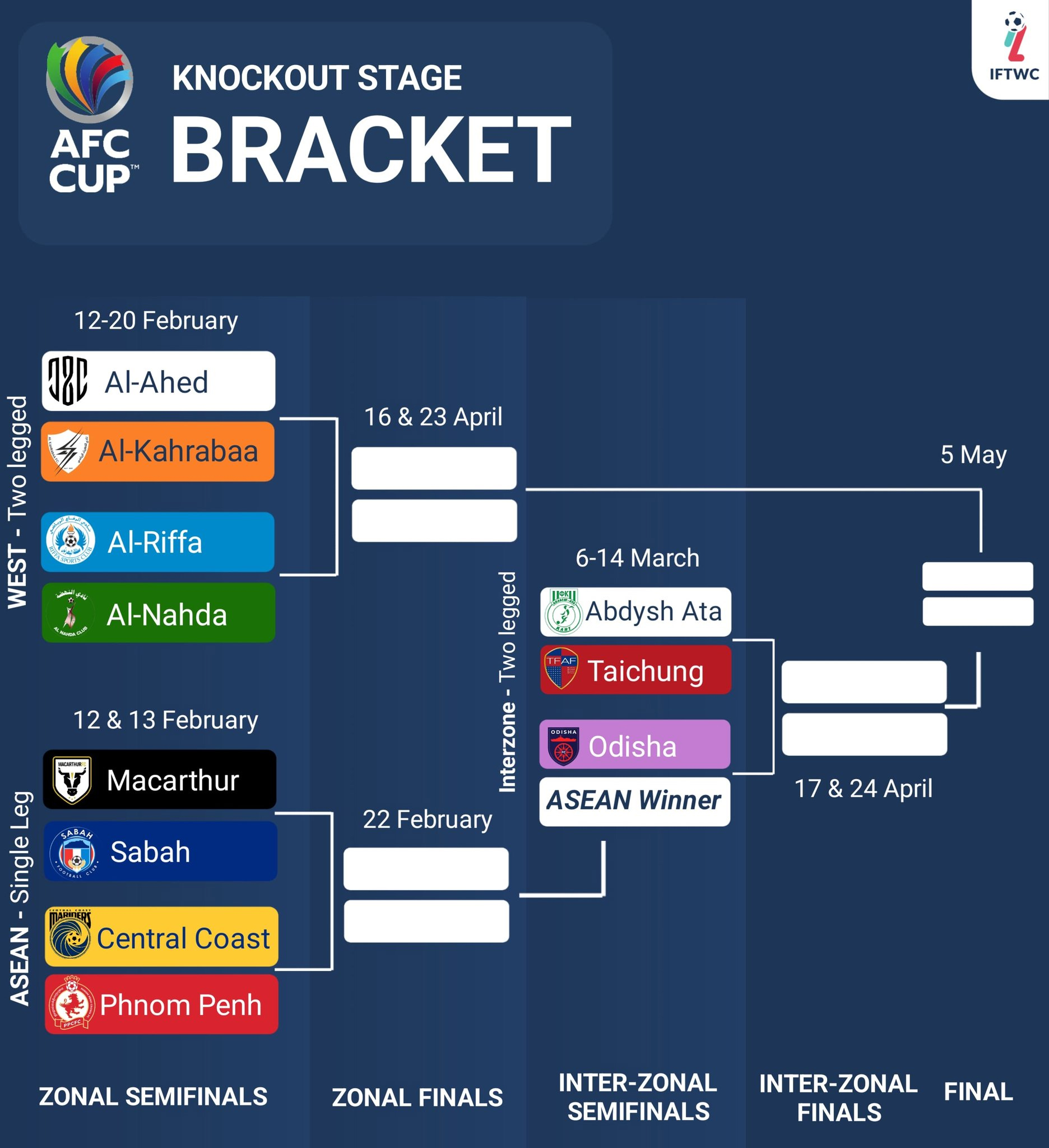 Vainqueurs de leur groupe, les deux franchises australiennes doivent désormais passer par une phase à élimination directe pour continuer à rêver de titre. Celle-ci verra les différentes zones asiatiques ne qualifier qu’un seul représentant. Ainsi, Macarthur et Central Coast, deux des quatre derniers représentants de l’ASEAN doivent passer par une demi-finale et finale de zone avant d’aller défier, Odisha, représentant de l’Asie du Sud, en demi-finale.