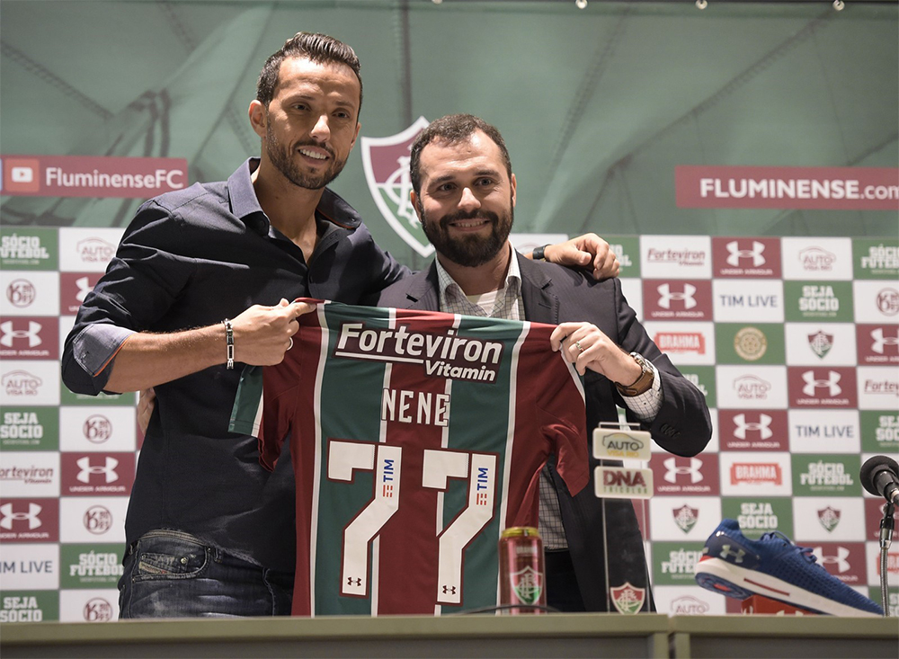 Nenê, qui fêtera ses 38 ans le 19 juillet, connaît son troisième club depuis son retour au Brésil. Après Vasco (44 buts en 132 matchs) et São Paulo (13 buts en 74 matchs), Nenê est de retour à Rio, du côté de Fluminense. En délicatesse à São Paulo, l’ancien Parisien a signé jusqu’en 2020 et on a hâte de voir son duo avec Ganso, sous la houlette de Fernando Diniz, même si Nenê n’exclut pas de commencer sur le banc : « À São Paulo, je n’avais pas de problèmes à être remplaçant. Je suis ici pour aider. Où ils me mettront, je serai heureux, jouant ou non. Je veux aider de n’importe quelle manière ».