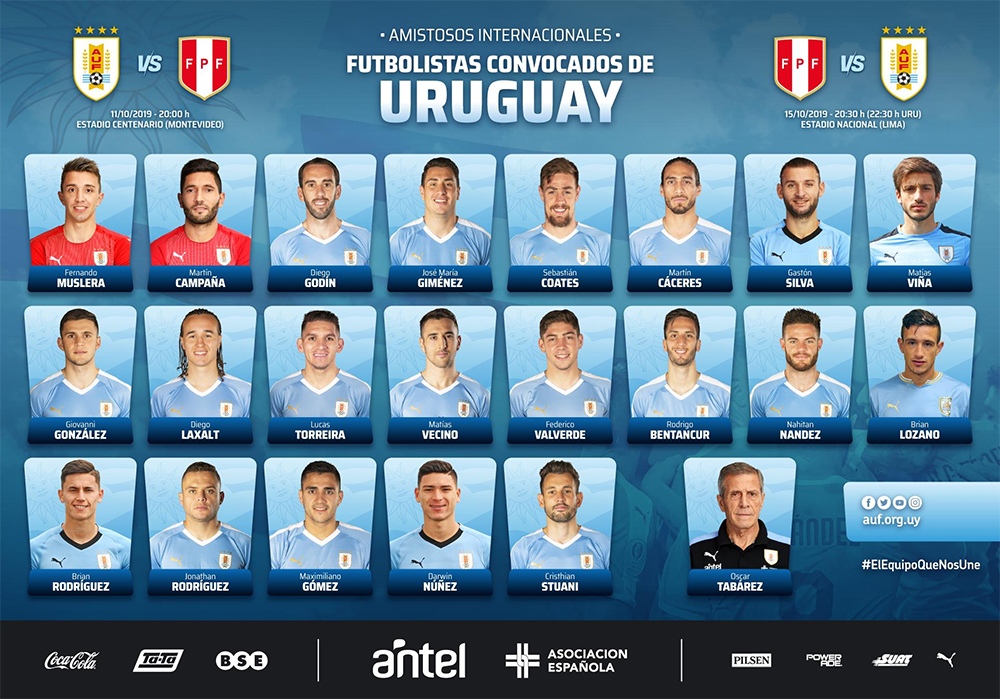 Beaucoup de continuité, comme d’habitude, dans la liste du Maestro. Pas de changement dans les cages, et la défense retrouve son capitaine Diego Godín, absent des derniers rassemblements. Sur les côtés, Matías Viña est convoqué à nouveau suite à ses bonnes performances avec Nacional, tout comme Giovanni González même si ce dernier éprouve des difficultés en championnat. Exit Matías Suárez, le montpelliérain. Du classique au milieu, avec l’absence de De Arrascaeta blessé lors de la demi-finale aller de Libertadores.