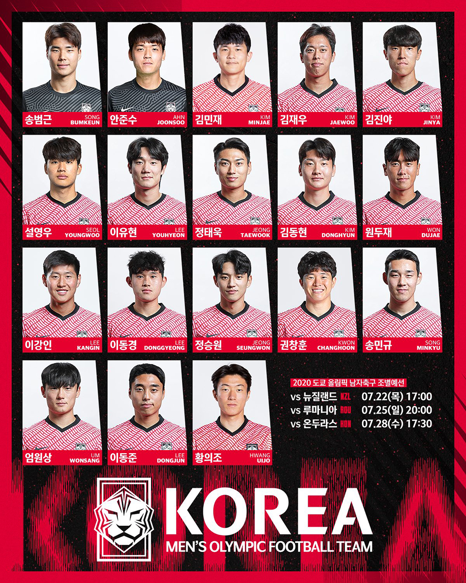 En revanche, seront bien présents la star de cette sélection Lee Kang-in (Valence), Um Won-sang (Gwangju) et le quatuor d'Ulsan, Won Du-jae, Seol Young-woo, Lee Dong-jun et Lee Dong-gyeong.