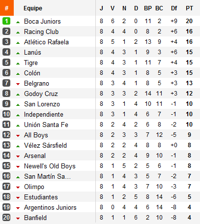 Alors que la neuvième journée débute ce soir, en guise d'amuse bouche, petit retour sur la huitième journée disputée en milieu de semaine, journée qui aura permis à Boca de prendre le large en tête du classement.