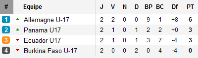 Dans le groupe E, comme le Brésil, l’Allemagne confirme son premier succès et écrasant le Burkina Faso, champion d’Afrique (victoire 3-0). La Mannschaft n’en finit plus d’impressionner et jouera le Panama lors de l’ultime journée, Panama qui pour sa part devra s’imposer suite à sa défaite devant l’Equateur. La seconde place du groupe se jouera entre ces deux équipes.