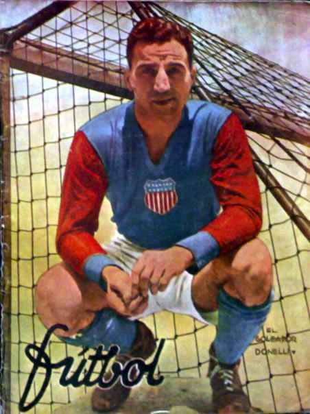 Côté américain, le mélange pro-amateurs n’est pas sans remous, les entraînements sont plutôt chiches (on joue notamment au base-ball) et la cohésion du groupe laisse à désirer avec par exemple l’affaire qui va toucher un certain Aldo Buff Donelly, qui va être notre héros du jour. Aldo Donelly, footballeur amateur, était arrivé en sélection précédé d’une sacrée réputation de buteur. La légende raconte par exemple qu’alors qu’il jouait à Heidelberg Soccer Club en 1929, il avait marqué 5 buts en huit minutes lors d’une victoire 9-0 face au First German of Newark. Appelé pour la première fois en sélection le 26 avril 1934, il avait donc embarqué le 5 mai et joué son premier match avec les US lors d’un amical organisé en Italie avant ce fameux choc face au Mexique. L’ambiance est tellement moyenne dans le groupe que certains joueurs ne voulaient pas de Donelly dans le groupe pour le match face au Mexique. Sauf que la veille, le sélectionneur le choisi dans le 11 et Donelly va faire exploser le Mexique à lui tout seul. Un but au quart d’heure, un deuxième à la demi-heure, une exclusion provoquée à l’heure de jeu et deux autres buts en fin de match, Buff devient le premier joueur à claquer 4 buts en Coupe du Monde, se permettant même le luxe de manquer un penalty en fin de match. Trois jours plus tard, exténués, les US en prennent 7 face à l’Italie. Donelly sauve l’honneur en inscrivant le seul but de sa sélection. Ses prestations lui vaudront d’être demandé par certains clubs européens et notamment italiens. Mais en ses temps troublés, il refusera les offres, rentrera au pays où il deviendra entraîneur des Steelers de Pittsburgh, équipe de foot US. Les USA reviendront à la Coupe du Monde 1950 los de laquelle un autre amateur entrera dans l’histoire avant de disparaître pendant près de 40 ans. Pendant ce temps, le Mexique ne cessera de croitre pour devenir le géant après lequel les américains courent désormais. Ce samedi, personne ne se souviendra d’Aldo Buff Donnelly, mais une chose est sûre, les américains auront besoin d’un sacré buteur pour dominer l’ogre mexicain.