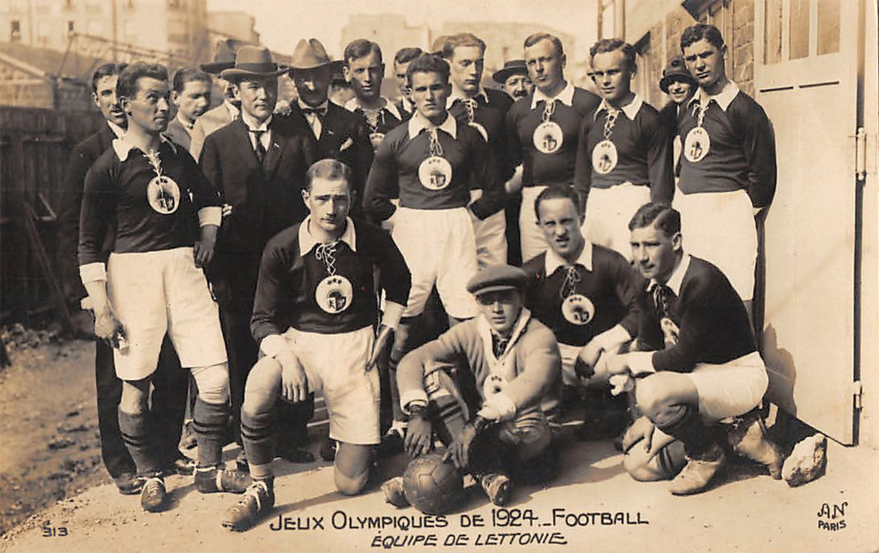 Comme ses voisins baltes, la Lettonie profite de son indépendance pour s’affilier à la FIFA en même temps que la sélection joue ses premiers matchs. La première rencontre a lieu en 1922 contre l’Estonie, la même année que son affiliation à la FIFA. Deux ans plus tard, l’équipe est l’une des premières à confirmer sa venue à Paris, bouclant son inscription dès le mois de mars. L’équipe est exonérée de premier tour et affronte la France lors des huitièmes de finale. « Nos joueurs vont aujourd'hui rencontrer l'équipe de la Lettonie. Qu'ils ne croient pas que la victoire est pour eux chose aisée et assurée ; qu'ils n'oublient pas que toutes les équipes qui prennent part aux Jeux Olympiques représentent chacune une nation, dont elles veulent faire triompher les couleurs, et surtout qu'ils pensent que l'honneur de notre football exige qu'ils donnent leur maximum moral et physique. Les Lettoniens sont de valeur sensiblement égale à celle des Esthoniens. Ceux-ci firent contre les Américains mieux que figure honorable, puisqu'ils eurent constamment le meilleur dans le jeu. Mais il est probable qu'ils seront inférieurs en vitesse et en décision. Aussi, il est probable que la France se qualifiera pour le tour suivant ».