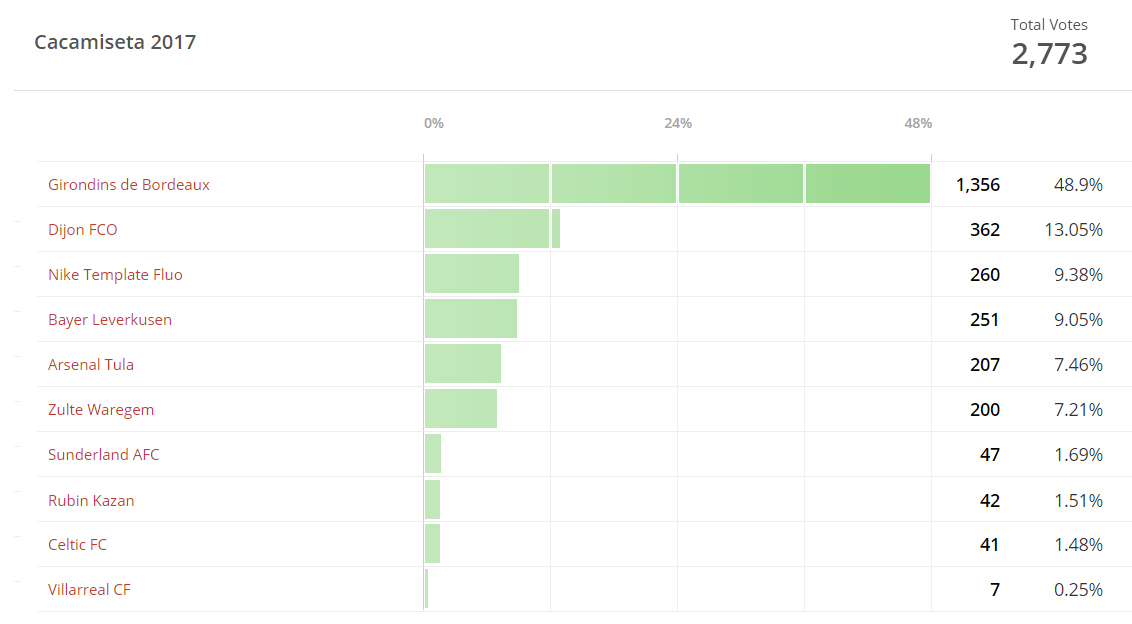 Il n’y aura eu que peu de suspense quant à l’attribution du titre tant convoité de pire maillot de l’année. Au terme d’un scrutin record, les Girondins deviennent les premiers à inscrire leur nom à deux reprises.