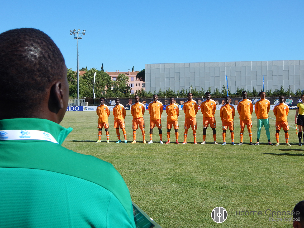 Les choses étaient bien différentes pour le deuxième choc de la journée. Car d’un côté, les regards se concentraient sur les Bleuets de Landry Chauvin qui affrontaient une équipe ivoirienne dont certains membres avaient déjà brillé au Tournoi de Montaigu il y a deux ans. Malgré les Abline, Diouf et autre Ugochukwu, ce sont finalement les Bleuets qui ont souffert une grande partie du match. Car face à eux, le duo Siaka Bamba – Odilon Kouassi contrôlait la récupération, permettant à Gilber Bandama de lancer les trois poisons offensifs de Lassina Dao, Abdramane Konaté – Christ Wawa (intenable dans son couloir) et Oumar Konaté (qui faisait vivre une salle fin d’après-midi au duo axial tricolore. Aussi était-ce assez logique de voir les Éléphanteaux ouvrir la marque en fin de premier acte, doubler la mise peu après l’heure de jeu et manquer d’un rien de prendre le large, Abdramane Konaté butant sur Mathieu Patouillet sur penalty. Aussi franche était la réaction tricolore en deuxième moitié de second acte, bien aidée notamment par l’entrée d’Antoine Joujou, la maîtrise globale de la rencontre était restée ivoirienne, malgré la succession de crampes et ennuis musculaires qui faisaient tomber les hommes en orange les uns après les autres. Qu’importe au final, la Côte d’Ivoire s’impose logique 2-0 et surtout marque son territoire dans le groupe.