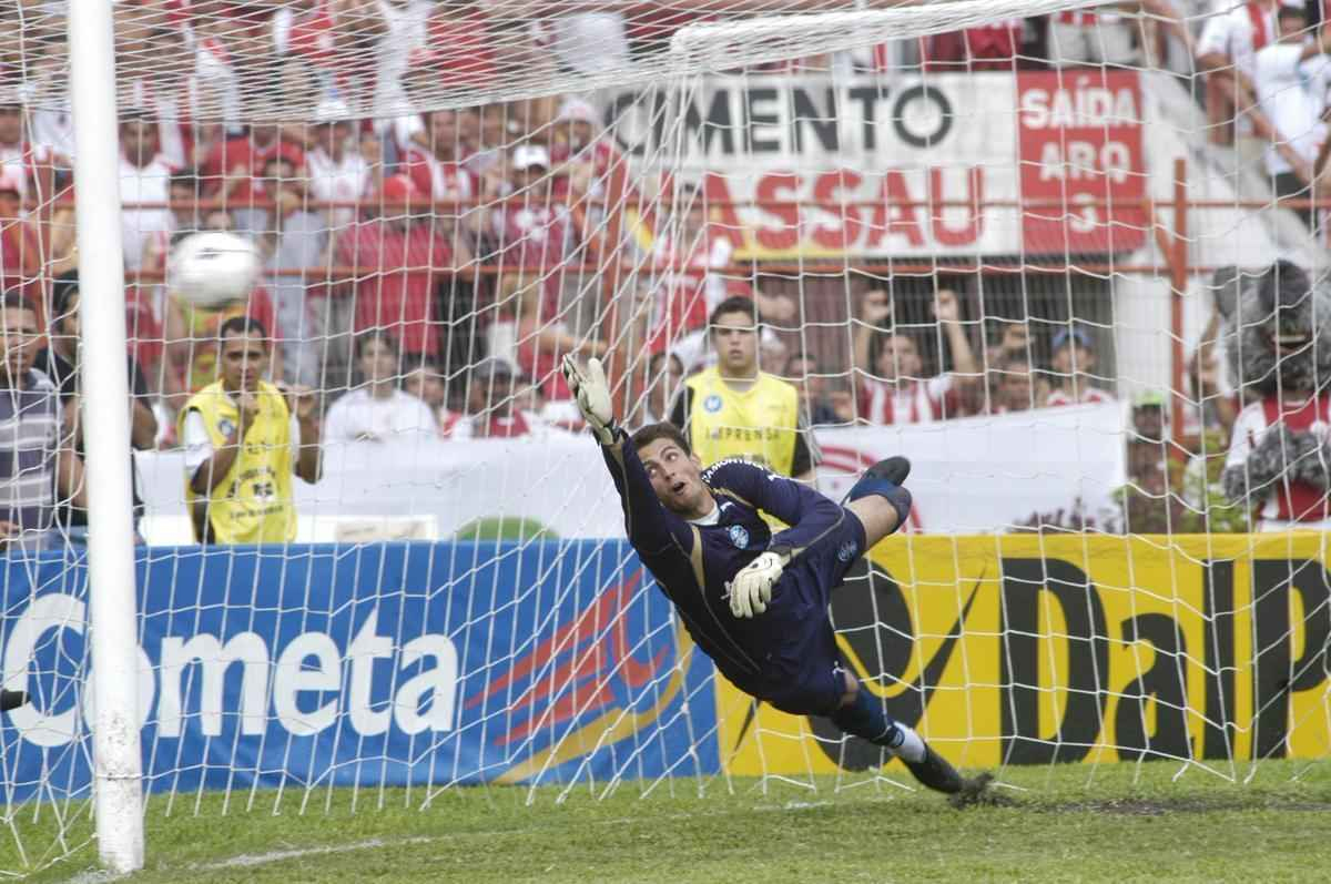 Náutico a besoin d’une victoire pour monter en première division et pousse dans une ambiance surchauffée. Dès la quatrième minute de jeu, Náutico obtient un bon coup franc, mais l’arbitre ne donne pas de carton jaune au gremista Marcelo Costa. Le public chante alors « Edílson », du nom d’un arbitre impliqué dans un scandale de corruption qui a secoué le football brésilien deux mois plus tôt. Le coup franc ne donne finalement rien et la ville de Recife connaît un premier coup de froid, puisqu’à deux kilomètres de là, Santa Cruz concède l’ouverture du score contre la Portuguesa. À ce moment-là, les deux clubs de Recife sont éliminés. À la demi-heure de jeu, Náutico obtient un penalty, réchauffant encore un peu plus l’ambiance du stade d’Aflitos. Domingos, le fautif sur le penalty, reçoit un carton jaune, tout comme son partenaire de la défense centrale de Grêmio, Pereira, pour protestation. Alors qu’au stade d’Arruda, Santa Cruz égalise, le latéral droit Bruno Carvalho se charge du penalty de Náutico. Son tir croisé s’écrase sur le poteau de Galatto, qui réalise dans la foulée deux parades déterminantes. Formé à Grêmio, Galatto fait ses débuts professionnels en 2005 et remplace peu à peu dans le cœur des supporters la légende Danrlei, gardien titulaire du Tricolor de 1993 à 2003, remportant tous les titres possibles. Au moment de l’arrêt de Galatto sur la frappe de Paulo Matos, les petites radios des supporters en tribune s’enflamment, le meilleur buteur du championnat Reinaldo s’offre un doublé et permet à Santa Cruz de virer en tête. Après une ultime offensive de Náutico, la première période s’achève sur un score de 0-0. À la mi-temps, Santa Cruz est provisoirement champion alors que le match nul suffit à Grêmio pour retrouver le Brasileirão.
