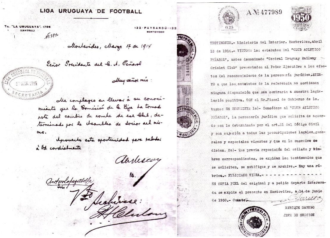 Deux documents produits par Peñarol pour confirmer sa continuité directe avec le CURCC