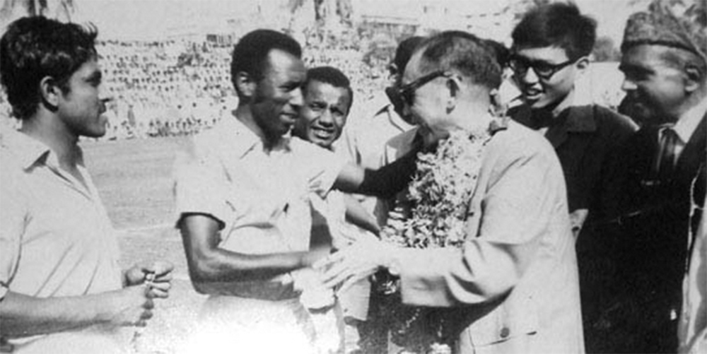 Mais c’est sous la tunique nationale des Shaheen que le milieu de terrain se dévoile au monde. Déjà dans son look, le joueur d’origine Sidi, l’ethnie des descendants d’esclaves d’Afrique de l’est, ressemble comme deux gouttes d’eau à un certain Edson Arantes do Nascimento. Mis au courant, le champion du monde 1958 et 1962 veut rencontrer son doppelgänger, mais jamais cette faille spatio-temporelle ne s’ouvrira… Quoiqu’il en soit, avec le Hazara Qayyum Ali Changezi, le défenseur Turab Ali ou Mourad Bakhsh, Majna est la figure de proue d’une équipe du Pakistan qui s’offrira quelques kifs dans les années cinquante-soixante. Lors des qualifications pour la Coupe d’Asie 1960, le Pakistan passe à un fifrelin de la grande messe continentale, surclassant l’Iran 4-1, l’Inde 1-0 et tenant Israël en échec 2-2. Las, les trois défaites en six matchs ne leur permirent pas d’avancer au tour suivant. Les sixties offrent le capitanat à Majna pour quatre longues années, durant lesquelles le Pakistan s’offre l’un de ses rares titres internationaux, la Coupe Merdeka de 1962 en écartant la Birmanie, le Japon, la Malaisie et l’Indonésie. Le Pakistan participe également à quelques RCD Cup avec l’Iran et la Turquie, mais se fait malgré tout poutrer aisément, sans compter quelques tournées en Chine ou en URSS. Certains prétendent même que l’équipe était capable de battre les Chinois et les Soviétiques mais les images manquent… En tout cas, le talent de Majna fait des émules et il reçoit des offres d’Inde, d’Union soviétique, d’Arabie saoudite ou de Chine, mais il préfère jouer dans son pays. En 1967, il décide de prendre sa retraite internationale après que lui et plusieurs joueurs de Karachi sont mis de côté par le secrétaire général de la PFF, Muhammad Hussain. Mais il s’offre un ultime baroud d’honneur pour les Jeux Asiatiques de 1974. Écrasé par l’Iran et la Birmanie, le Pakistan parvient tout de même à atomiser Bahreïn 5-1 pour finir sur une bonne note. En club, Majna fait encore une dernière pige au Karachi Port Trust (après l’indépendance du Bangladesh et son départ de Dhaka) avant de raccrocher les crampons en 1971 et devenir coach.