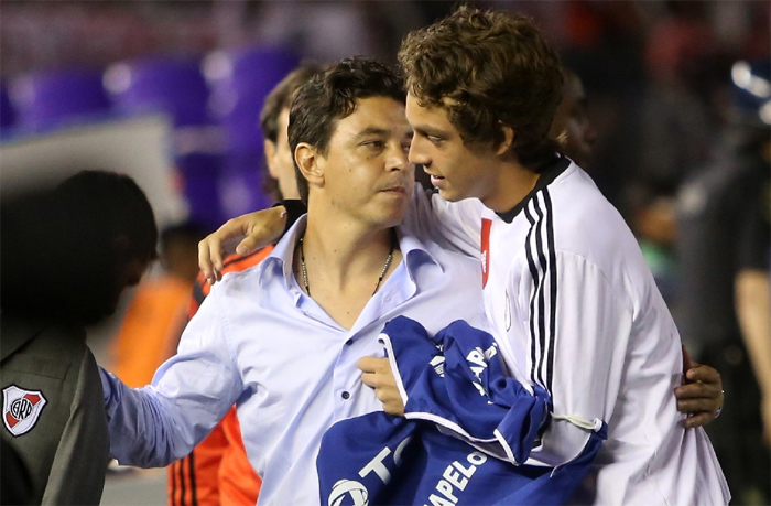 J’aurais aimé avoir Bielsa plus tard, à 29 – 30 ans parce que j’ai croisé sa route trop jeune et même sans partager énormément, il est celui qui m’a appris le plus de choses. Attention : Bielsa n’est pas facile à approcher car il impose une certaine distance, mais quand il s’approche pour vous parler, vous apprenez. J’ai aussi appris de Sabella car il était généreux avec moi. Il m’a fait débuter avec la réserve de River quand j’avais 15 ans et était toujours disponible pour le dialogue. Bien qu’il n’était pas expansif, il m’a toujours soutenu, toujours aidé à me faire grandir, me faire réfléchir. Ce sont les deux meilleurs à qui je dois énormément.