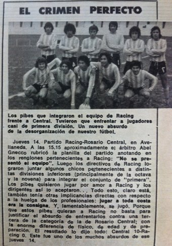 Malheureusement, ce titre n’est que le dernier moment de gloire avant la chute. Les années 70 voient le Racing glisser irrémédiablement vers les profondeurs de l’élite argentine. En 1975, un conflit avec l’AFA aboutit notamment à un Racing – Central disputé devant 5 spectateurs payants venus voir les pibes des octava et novena (u15) du Racing prendre un historique 0-10 face à la réserve de Central. En 1983, le club est officiellement relégué en Primera B pour la seule fois de son histoire. Il remonte en 1985 sous les ordres d’Alfio Basile et renait de ses cendres en remportant notamment une Supercopa Sudamericana en 1988,