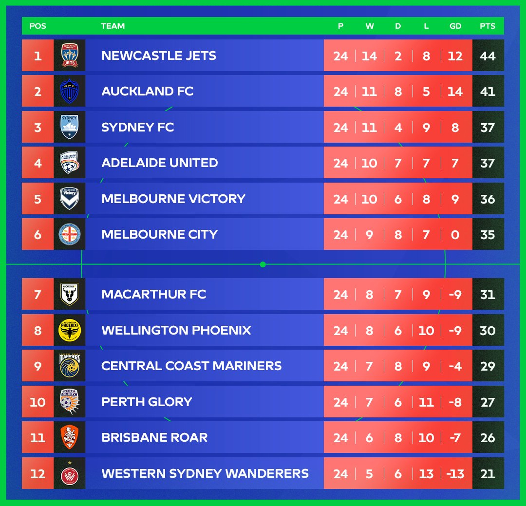 L’incroyable série de victoires de Newcastle Jets a pris brutalement fin le 2 avril au Campbelltown Sports Stadium lorsque Macarthur a fait tomber le leader (3-2). Les Jets n’ont pas réussi à repartir de l’avant lors du choc contre Adelaide United, concédant un nul frustrant à domicile (1-1) alors que de leur côté, les Reds stagnent également avec deux matchs nuls consécutifs contre Auckland (1-1) et Newcastle (1-1), manquant l’occasion de maintenir la pression sur la tête du classement.